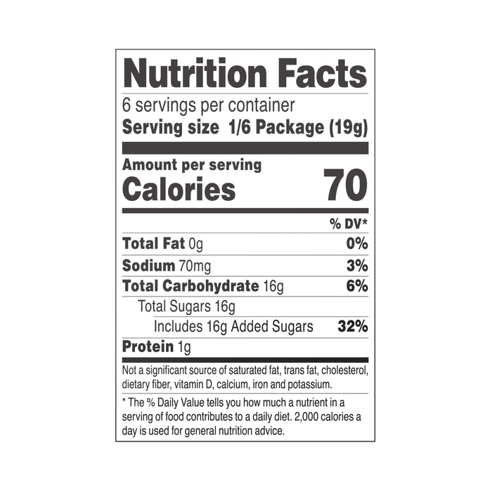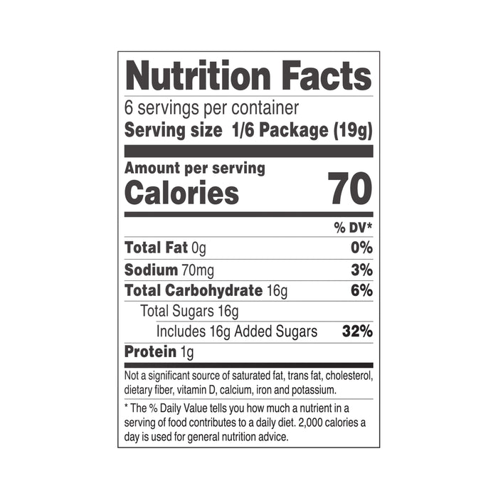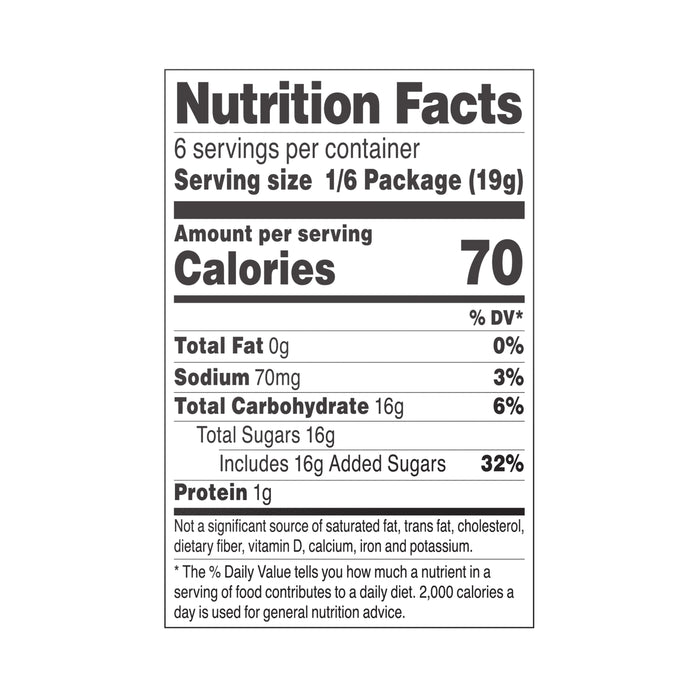 SUGAR, GELATIN, CONTAINS 2% OR LESS OF THE FOLLOWING: NATURAL AND ARTIFICIAL FLAVORS, FUMARIC ACID, SODIUM CITRATE, MALTODEXTRIN, MALIC ACID, SUCRALOSE, ACESULFAME POTASSIUM, RED 40.