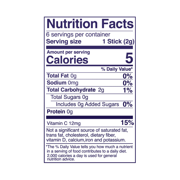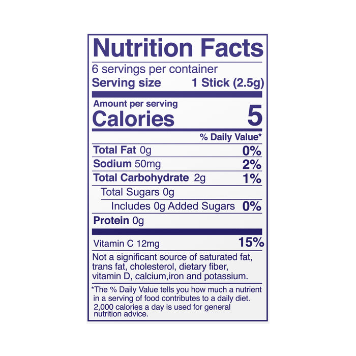 CITRIC ACID, MALTODEXTRIN*, MALIC ACID, SODIUM CITRATE, NATURAL AND ARTIFICIAL FLAVORS, CONTAINS 2% OR LESS OF THE FOLLOWING: SUCRALOSE, PECTIN, POTASSIUM CITRATE, ACESULFAME POTASSIUM, SALT, CELLULOSE GUM, GUAR GUM, ASCORBIC ACID (VITAMIN C), DISODIUM PHOSPHATE, MAGNESIUM OXIDE, CALCIUM SILICATE, ARTIFICIAL COLOR, YELLOW 6, BLUE 1.